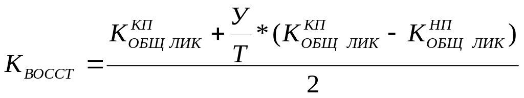 где У— период восстановления платежеспособности; принимается равным 3-м месяцам; Т — длительность отчетного периода (в месяцах).