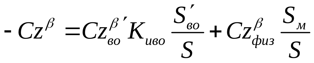 Похідна літака складається з суми похідних крила, фюзеляжу і горизонтального оперення, обчислених з урахуванням інтерференції і віднесених до характерної площі - площі крила S.