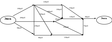 Гражданин Иванов хочет доехать из города Энска в город Эмск. Прямого сообщения между городами нет. Добраться до Эмска можно различными путями, стоимости проезда между каждой парой промежуточных пунктов указаны на схеме.