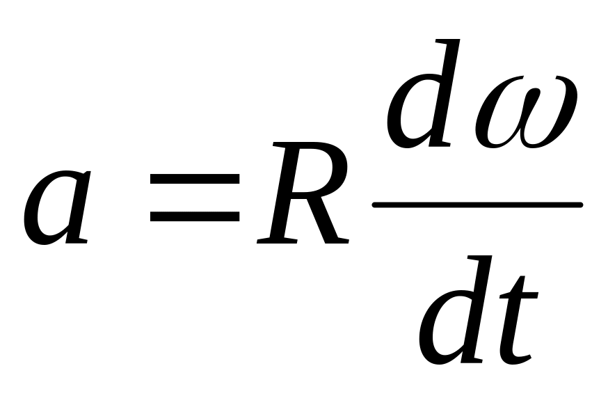 Враховуючи зв’язок між лінійною та кутовою швидкостями, можна записати співвідношення між кутовим та лінійним прискореннями: