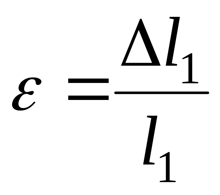 де Δl1 – видовження якогось відрізка стержня, що мав початкову довжину l1. з умови рівноваги випливає, що сили, прикладені до кінців будь-якого відрізка стержня, рівні за величиною й протилежні за напрямком. Оскільки сказане справедливо для довільного відрізка, отже, в будь-якому поперечному перерізі виникають зусилля, що рівні F.
