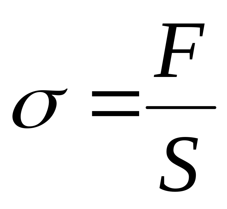 Якщо матеріал однорідний, то можна вважати, що зусилля розподілене по поверхні поперечного перерізу. Величину такого зусилля, яке дія на одиницю площі поперечного перерізу, називають напруженням і позначають σ. Воно дорівнюватиме: