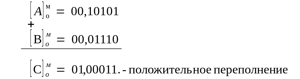 Примеры. Заданы: а) А = +0,10101; В = 0,01110. Найти [С]м0.