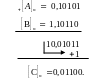 [A]пр = 0,10110; [B]пр= 1,00101,