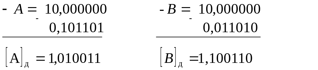 Пример. Заданы А = —0,10101; В = —0,01110. Найти [A]0 и [В]0.