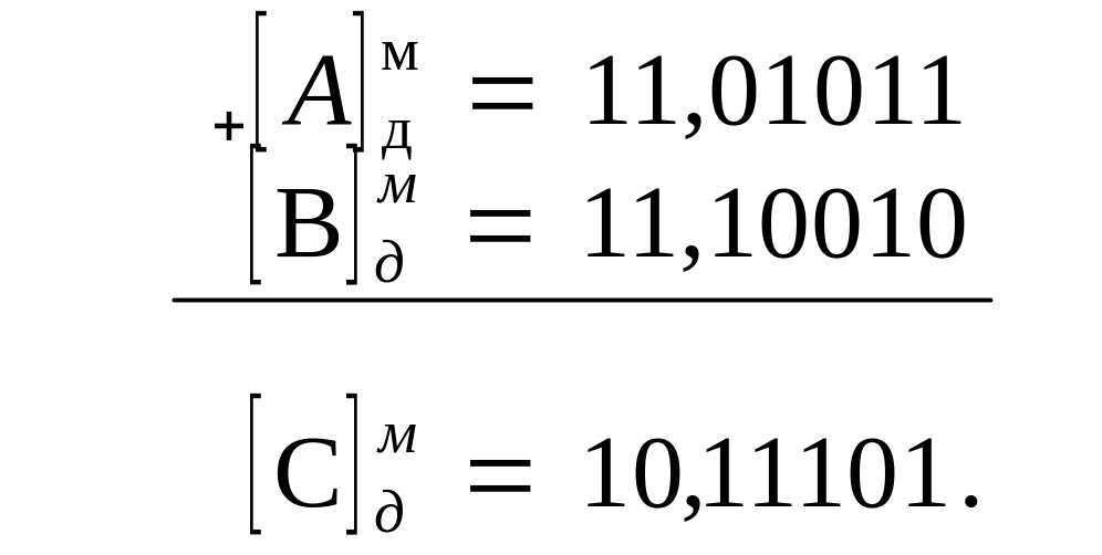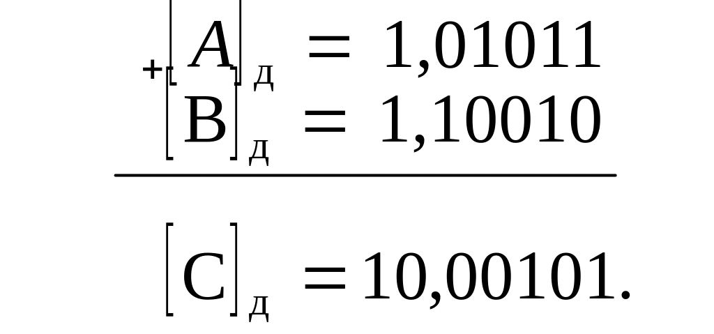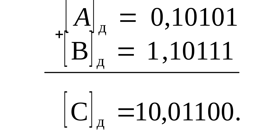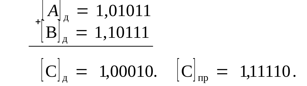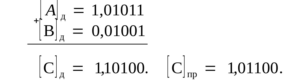 [С]пр = А + В = 0,10110 + 0,00101 = 0,11011
