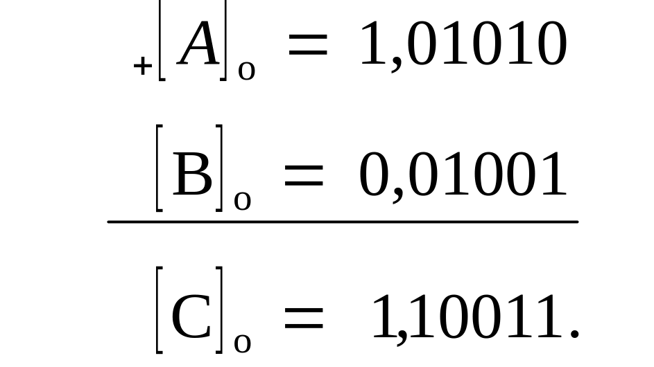 Пример. Заданы А = —0,10101; B= +0,01001. Найти [С]0.