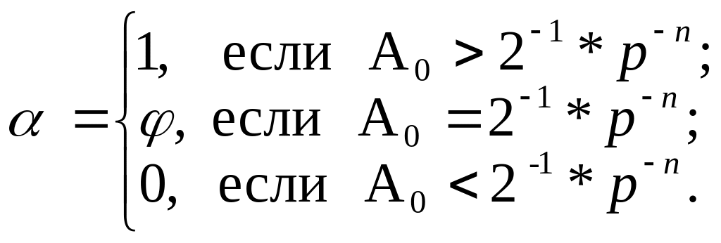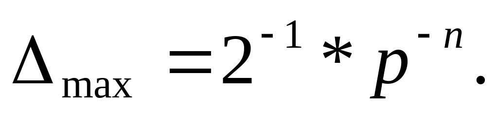 При этом если в неокругленном результате разряд а-n равен единице, то он не изменяется при округлении, а максимальная погрешность при отбрасывании А0 для положительных и отрицательных чисел составляет соответственно max= ± p-n (1 — p-t ). Если в неокругленном результате операции значение разряда а_п есть нуль, то установка его в единицу вносит погрешность, максимальная величина которой может достигать соответственно mах = ½ p-n (1 — p-t).
