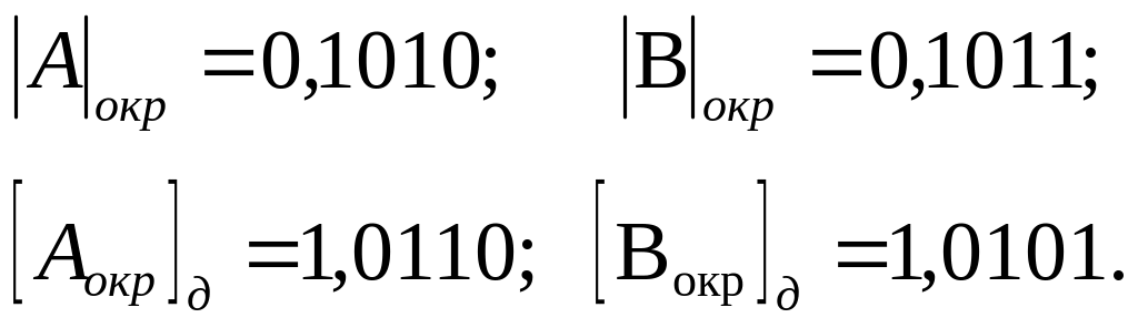 Непосредственное округление дополнительніх кодов чисел A и B.