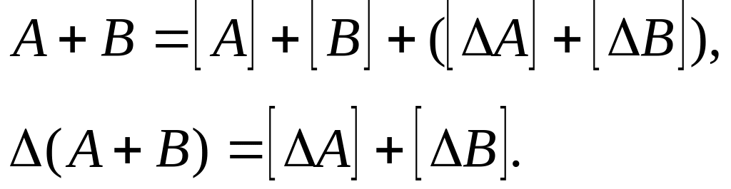 Погрешности выполнения арифметических операций могут быть оценены, если рассматривать их как результат выполнения элементарной операции над операндами А и В, заданными машинными изображениями [А] и [В] с абсолютными погрешностями соответственно [А] и [В].