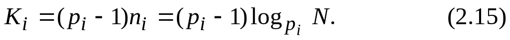 где pi — основание i-й системы счисления; ni — количество разрядов представляемого числа. Правомерность последнего утверждения обусловлена тем, что, например, при умножении время умножения на 1 разряд пропорционально основанию р, а на все разряды — пропорционально р п.