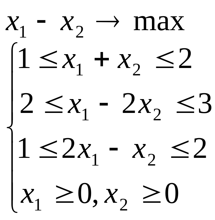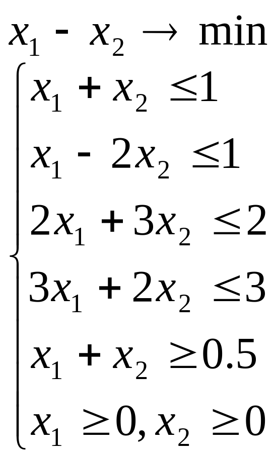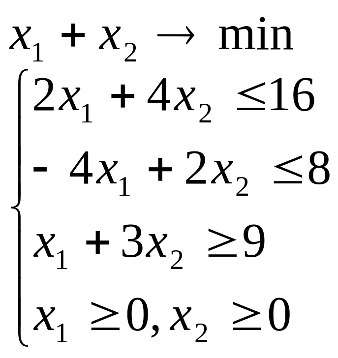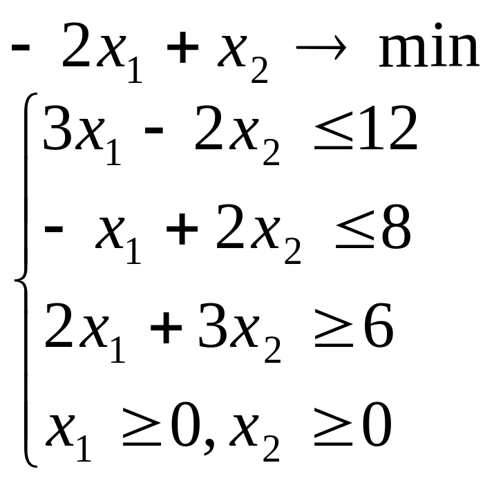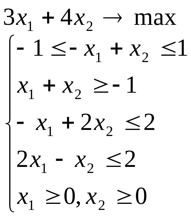Розв’язати задачу лінійного програмування графічним методом при числі змінних n = 2.