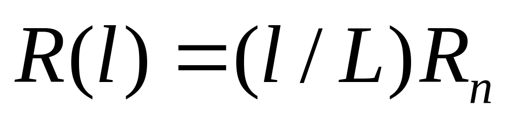 Величина сопротивления R между скользящим контактом и одним из концов резистора является функцией, с одной стороны, положения скользящего контакта и, следовательно, подвижной детали, положение которой измеряется, и, с другой стороны, конструкции резистора. Если резистор имеет однородную конструкцию, то потенциометр линеен, так как существует соотношение прямой пропорциональности между величиной R и положением скользящего контакта.