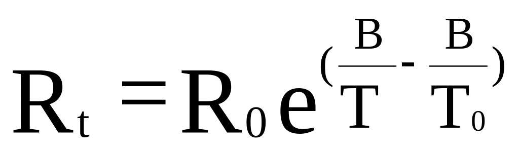 Сопротивление термистора при температуре Т можно определить по формуле :