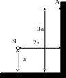 3. Точковий заряд q = 2 пКл розміщений у діелектрику з відносною діелектричною проникністю εr = 4 паралельно до двох площин, які утворюють прямий двогранний кут. Визначити поверхневу густину зарядів у точці А, якщо а = 40 см. (28 балів).