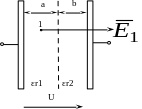 4. Паралельно до безмежної площини розділення двох феромагнітних середовищ з магнітними проникностями μ1 = 1,9 μ0 та μ2 = 1,1 μ0 й паралельно один до одного розміщенні два довгі тонкі ізольовані провідники, що утворюють двопровідну лінію. По лінії тече постійний струм І = 9,2 А в напрямку, який вказаний на рисунку. Біля лінії знаходиться виток, який виготовлений також із тонкого ізольованого провідника і має вид прямокутної рамки. Дві сторони цього прямокутного витка паралельні до провідників лінії. Розмір витка у напрямку, який перпендикулярний до площини рисунка дорівнює 87 мм. (20 балів).