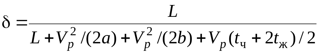 b – сповільнення автомобіля при гальмуванні (0,6-1,5 м/с2 )