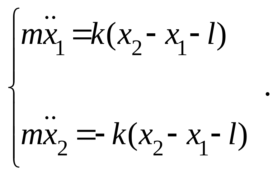 Во втором уравнении величина (x2 – x1 – l) представляет растяжение пружины. Обозначая ее через Δx, перепишем данное уравнение: