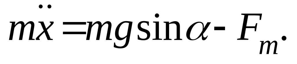 После этого момента правый брусок по инерции продолжает двигаться, длина пружины увеличивается и упругая сила, возникающая при растяжении пружины, отрывает левый брусок от стенки. С этого момента начинается свободное движение системы. Это движение описывается системой дифференциальных уравнений. Согласно 2-му закону Ньютона имеем: