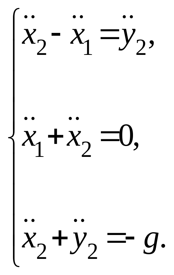 Дважды дифференцируя это соотношение по времени, складывая уравнение для клина с первым из уравнений для бруска и складывая уравнения системы для бруска, получим систему уравнений: