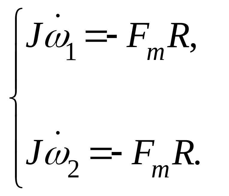 Записываем уравнения моментов для каждого из цилиндров до наступления режима чистого качения, получаем систему уравнений: