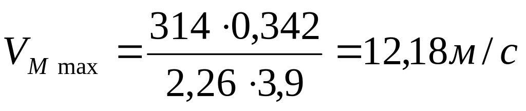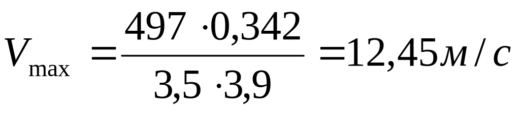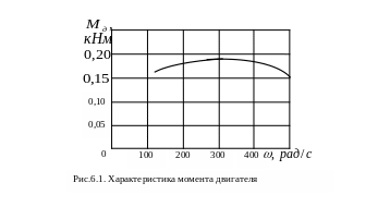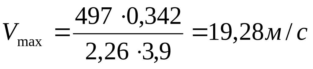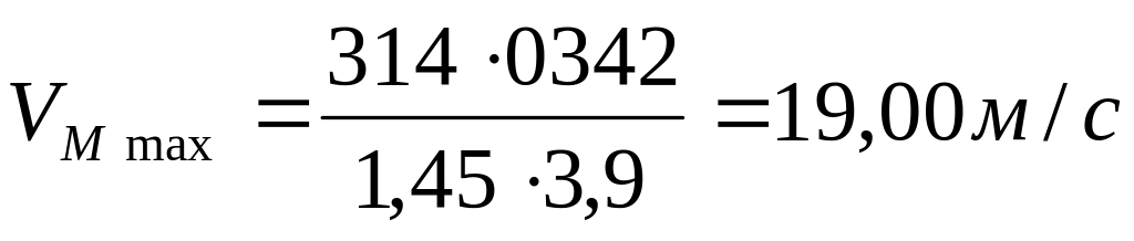 Подставляя значения минимальной и максимальной частоты вращения вала двигателя, а также частоты вращения вала двигателя, соответствующей максимальному моменту двигателя, взятых по характеристике, изображённой на рисунке 6.1, получим значения скоростей автомобиля на каждой из передач.