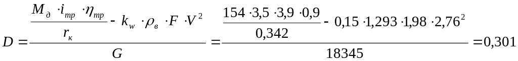 Подставляя найденные величины и параметры автомобиля, определим значения динамического фактора на каждой из передач.