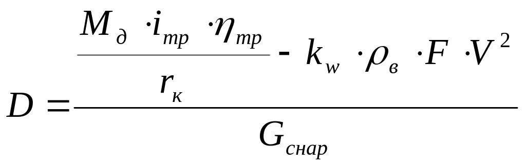 Динамический фактор для снаряженного веса автомобиля определяется по формуле:
