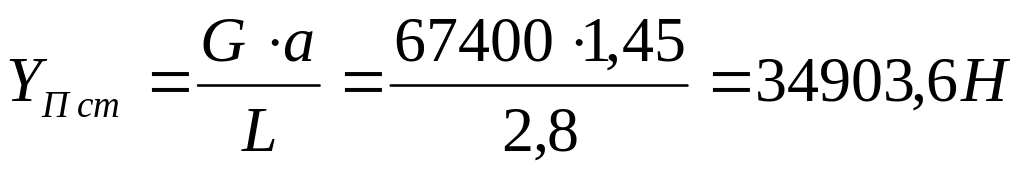 Определим нормальную реакцию основания, действующую на передние колёса, в статическом положении трактора на горизонтальном участке пути