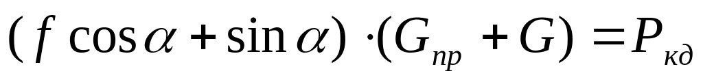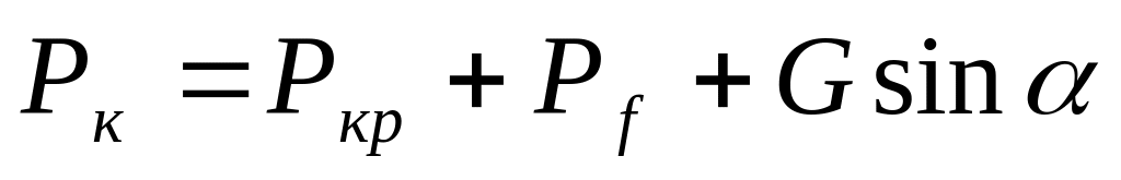 Тогда уравнение тягового баланса гусеничного трактора при заданном режиме движении на подъём с углом можно записать