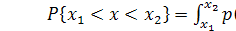 вероятность нахождения случайной величины х в диапазоне от х1 до х2 Р {х1 < х < х2} = F(x2) - F(x1).