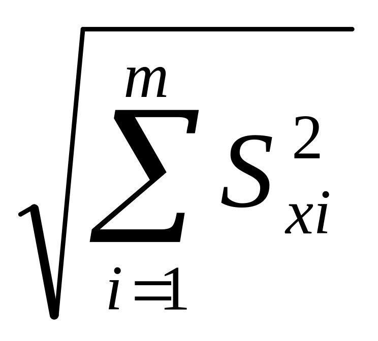 где Zp -точка нормированной функции Лапласа, отмечающей вероятности Р. При Р=0,95 ZP= 2. Если СКО Sxi определены экспериментально при небольшом числе измерений (n < 30), то в данной формуле вместо коэффициента ZP следует использовать коэффициент Стьюдента, соответствующий числу степени свободы i-й составляющей, оценка которой произведена при наименьшем числе измерений.