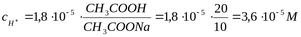 втором порядке.Рассчитать константу скорости реакции для всех случаев по уравнению (31). При расчете ионных концентраций необходимо учитывать разведение растворов по формуле (10), не забывая, что общее количества раствора получилось равным 200 см3. Концентрацию ионов водорода вычислять по формуле буферной смеси (см. ниже пример расчета).