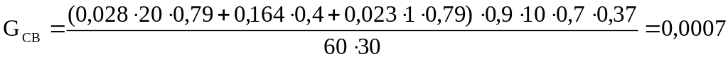 Максимально-разовый выброс соединений свинца (Gсв) определяется по формуле (71), г/с, рассчитывается для месяца с наиболее низкой среднемесячной температурой. Подставляя значения, получаем: