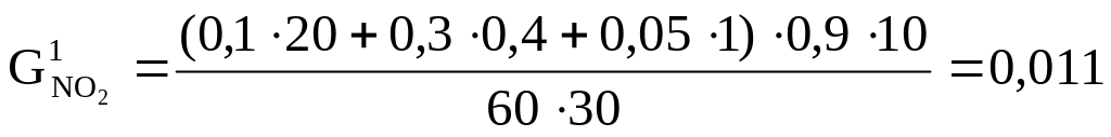 Максимально-разовый выброс i-го вещества ( ) определяется по формуле (66), г/с. Максимально разовый выброс рассчитывается для месяца с наиболее низкой среднемесячной температурой. Подставляя значения, получаем: