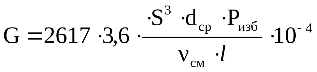 где F – площадь щелевого зазора, м2; Ризб – разность давлений в аппарате и окружающей среде, Па; νсм – кинематическая вязкость газовой смеси в аппарате (трубопроводе), м2/с; l – средняя длина щелевого зазора, м; g – ускорение свободного падения, м/с2.