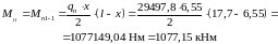 Изгибающий момент от внешних расчетных нагрузок (при f = 1,0) в расчетном сечении 1-1 при расчете по второй группе предельных состояний