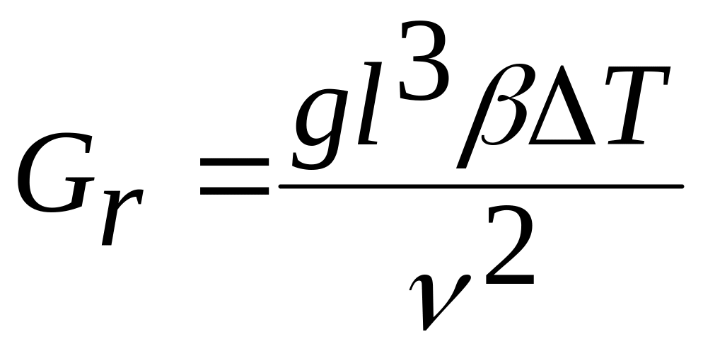 характеризующий отношение между подъемной силой в жидкости, возникающей вследствие разности плотностей, и силой вязкости. В (6.11) b - коэффициент объемного расширения жидкости; DT - разность температур жидкости и стенки.
