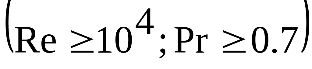 При развитом турбулентном режиме течения (Re ³ 104) общий вид функциональной зависимости остается тем же. Экспериментальные данные по теплоотдаче при вынужденной конвекции обычно обобщают в виде степенной зависимости