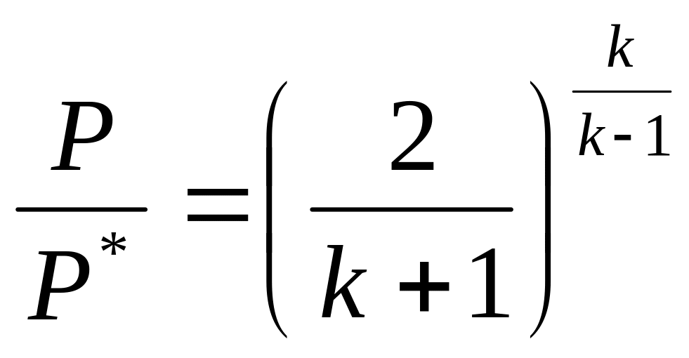 где k – показатель адиабаты газа; Р, Р* - соответственно статическое и полное давления в сечении; |