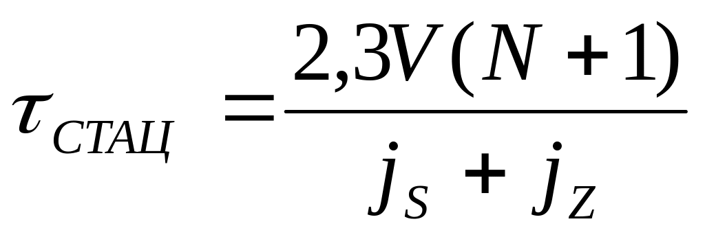 Полученные формулы выведены для условия работы ванн промывочного комплекса в стационарных условиях. Проверим справедливость допущения о стационарности условий работы. Время выхода на стационарный режим можно рассчитать по формуле