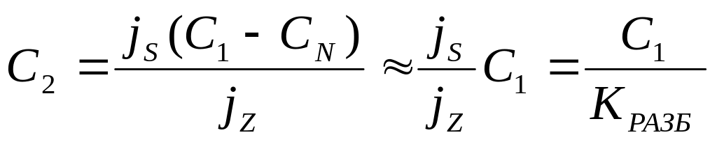 Во вторую ванну загрузочное приспособление приходит из первой промывной ванны с концентрацией компонента С1. Уравнение материального баланса в этом случае будет выглядеть, как