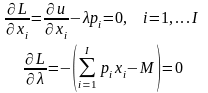 И предполагая, что функция порядковой полезности принадлежит к классу С2, запишем необходимые условия экстремума: