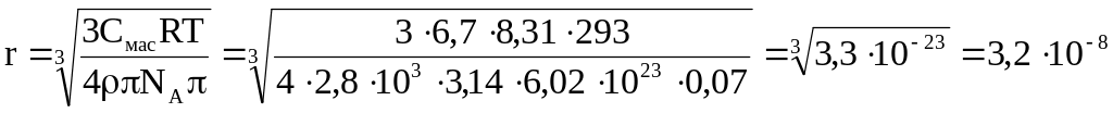 откуда определяем выражение для радиуса частиц с учетом того, что = 2,8 г/см3 = 2,8 103 кг/м3, температура Т = 293 К