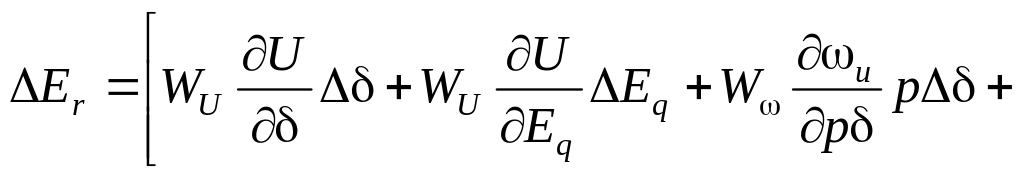 Приращения параметров режима через их частные производные записывают следующим образом: