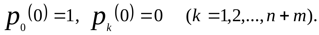 Эти уравнения для вероятностей состояний называются уравнениями Колмогорова. Для однозначного решения системы должны быть заданы начальные значения: p1(0), p2(0), …,pn(0), причем