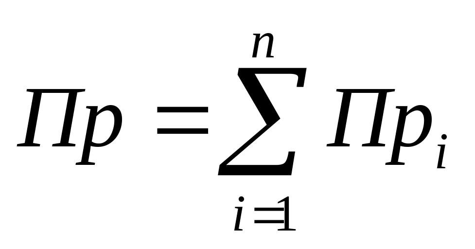 Загальний обсяг планового прибутку від реалізації продукції розраховується як сума прибутків по всіх видах продукції, тобто: