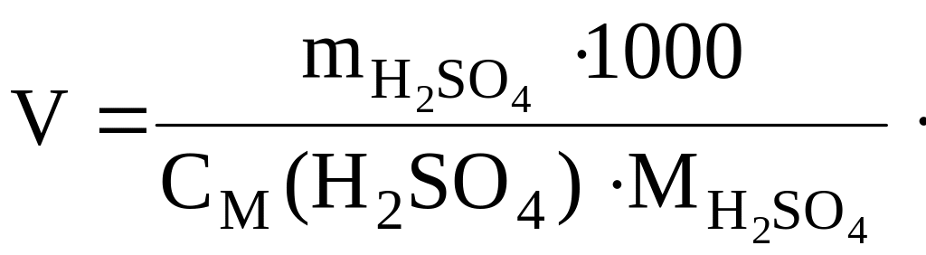 Затем рассчитывается необходимый объем раствора серной кислоты