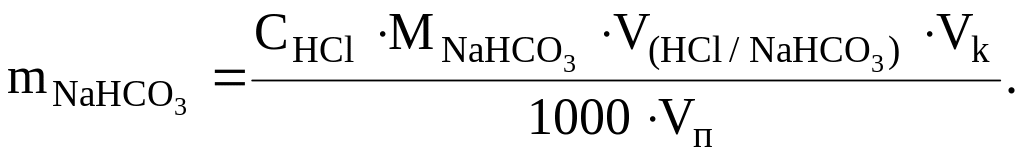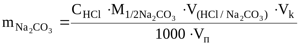 По данным анализа рассчитывают массу гидрокарбоната и массу карбоната в анализируемом объеме согласно формулам: