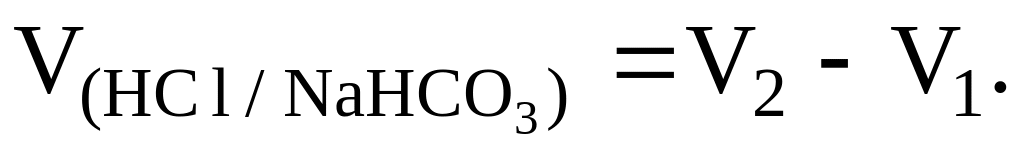 По разности объемов V2 – 2V1 определяют объем кислоты, израсходованной на титрование гидрокарбоната: